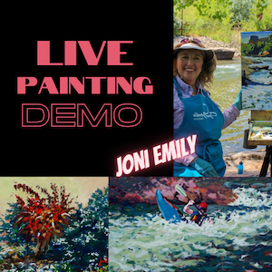 Meet Artist Joni Emily for a Free, Live Painting DemoMeet Artist Joni Emily for a Live Painting Demo Make Your Saturday a day of learning about art while watching Joni Emily at her easel in action! She will be joining us for the afternoon to chat with you during your visit and showing you her oil painting techniques while sharing secrets to success as an artist. As an extra bonus, you will have first opportunity to see her newly hung collection for purchase. Free. Family Friendly.