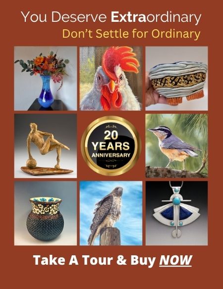 Owner Sharon Wolff carefully selects the finest works of art by a select group of artists specializing in oil, watercolor, pastel, and mixed medium in a wide range of styles including expressionism, impressionism, realism, and more. In a few minutes, you will also find scratchboard art, metal art, bronze and stone sculptures, pottery and ceramics, blown and fused glass, and wearable art jewelry among the diverse collection of wall art.